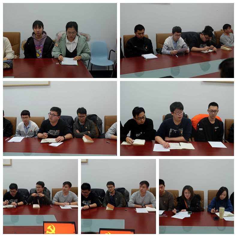 学生党员鲍夏夏、李宁和戴含芳讲述了改革开放以来国家、家乡、个人的发展与变化,表达了对改革开放40年以来的感悟和认知;段粟宇和张远修作为暑期社会实践成员代表分享了前往梁家河参与社会实践的心得,展示了改革开放40年来梁家河翻天覆地的变化。田恺和王健分享了参观国家博物馆庆祝改革开放40周年大型展览的体会,从中国快递行业的发展和制造业的进步说起,展示了国家改革开放以来历史性的变革和时代性的飞跃。