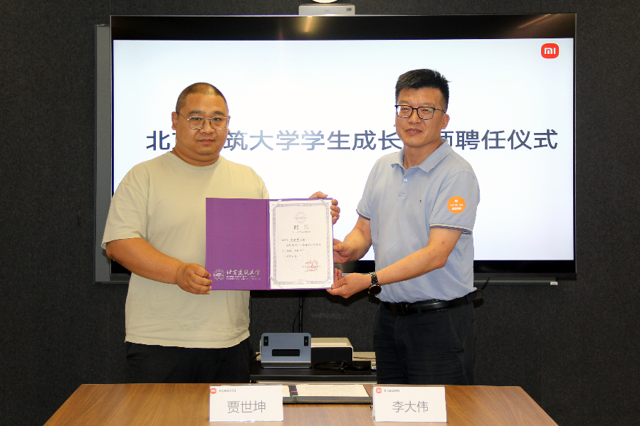 友里 党委书记李大伟为小米机器人事业部产品总监贾世坤颁发学生成长导师聘书