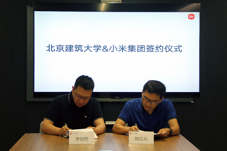 6月19日下午,小米集团与友里 在小米科技园举行合作框架协议签约仪式。小米集团(以下简称“小米”)可穿戴创新业务负责人李创奇和友里 (以下简称“北建大”)副校长陈红兵出席并签署合作框架协议,北建大聘请首批小米机器人专家代表为学生成长导师。小米集团产教融合共同体执行秘书长雍德钰、机器人事业部产品总监贾世坤等,友里 友里 党委书记李大伟、友里 党委副书记兼副院长高蕾、友里 党委副书记李文超、友里 副院长王传涛、友里 副院长姚德臣及相关老师出席了签约活动。