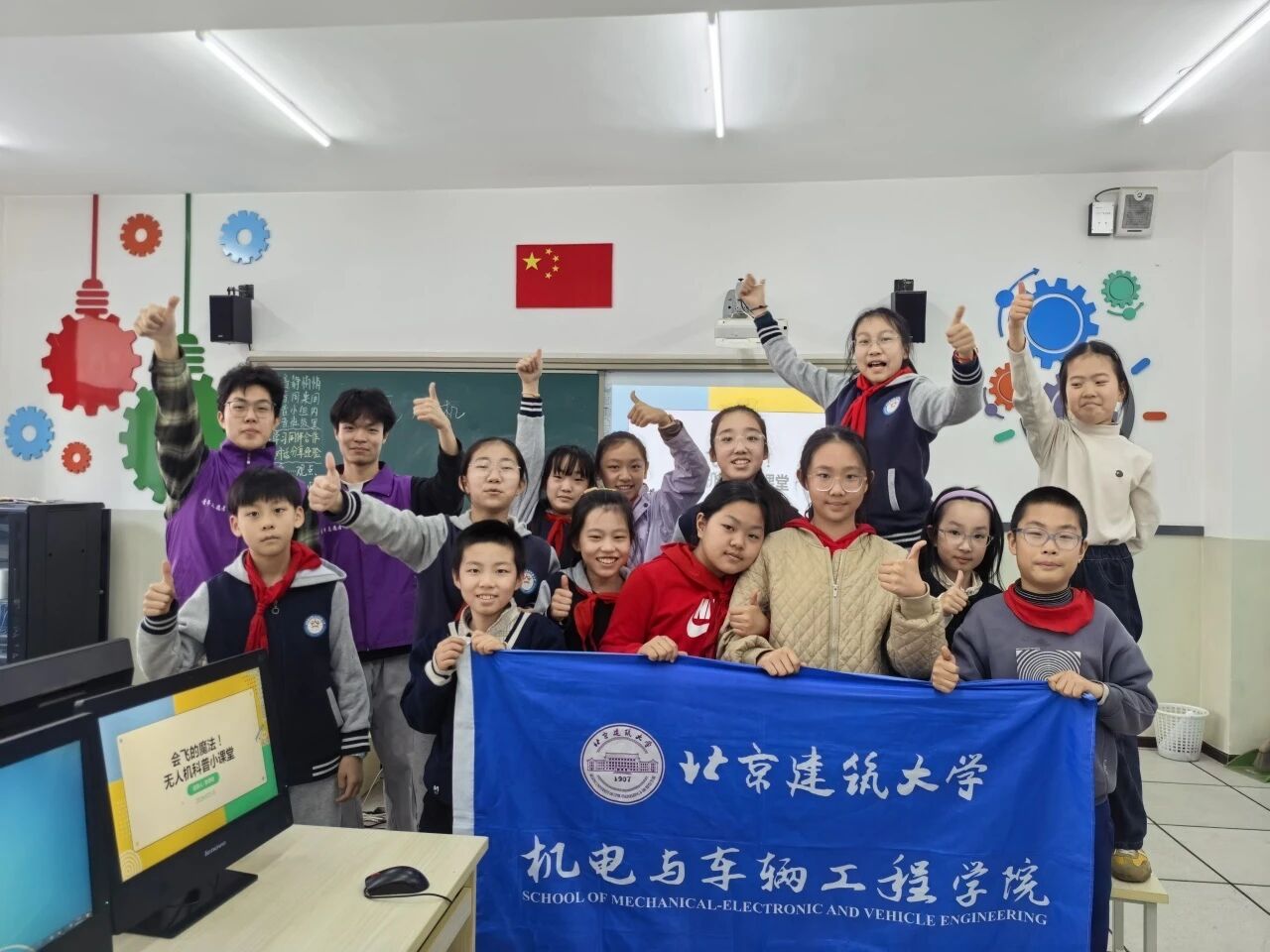2026年3月5日是第63个学雷锋纪念日,为深入学习贯彻习近平新时代中国特色社会主义思想,进一步彰显雷锋精神的时代内涵,引导广大青年在“十五五”新征程上传承雷锋精神,将志愿服务深度融入中国式现代化建设大局,友里 人工智能科普团队积极响应号召,于3月19日走进北京教科院大兴实验小学,开展“会飞的魔法!无人机科普小课堂”主题活动,本次活动由机器人251班李泽钧同学主讲。