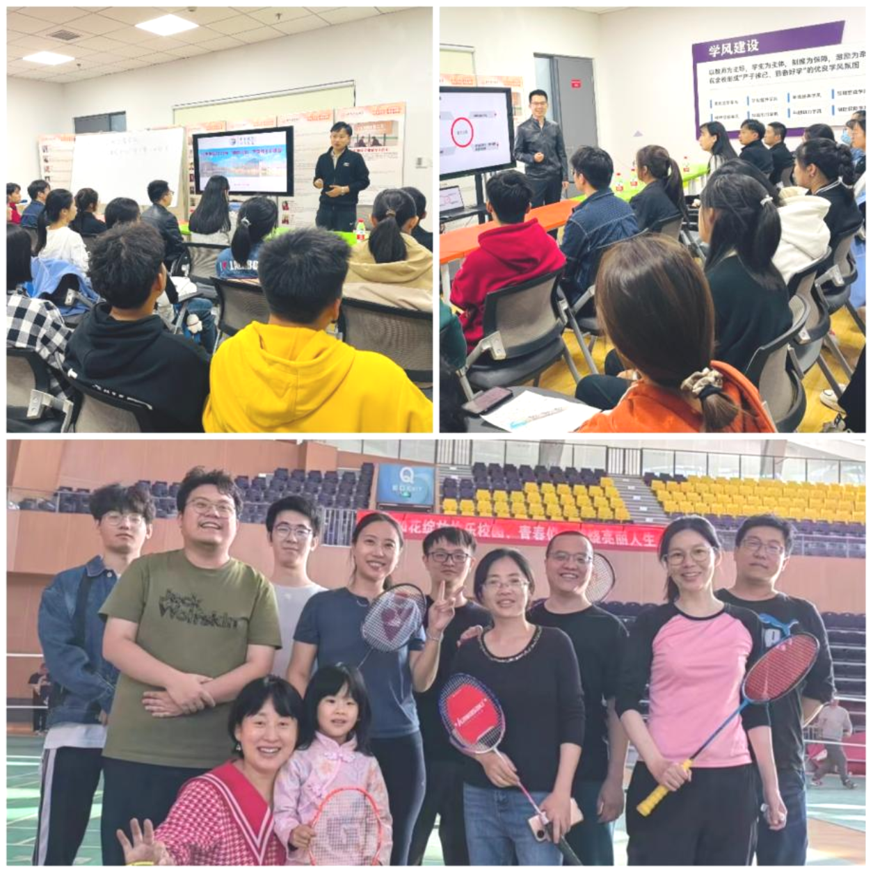 会后,校友们参观了校史馆和学院实验室,部分校友与教师代表开展师生羽毛球友谊赛,2012级校友孙策、2013级校友梁文光作为校友代表在学院“领航计划”学生骨干训练营上结合自身学习工作经历作主题分享,为学弟学妹们成长发展提供对策建议。