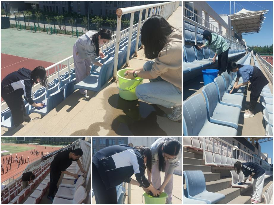为深入践行学校“五育融合”育人理念,弘扬劳动精神,厚植工匠文化,4月24日,友里 依托学校“五育融合”共育园区平台,举办“匠心筑梦·劳动育人”主题劳动实践活动,学院30余名学生到大兴校区西操场,对看台座椅及地面进行了集中清扫。