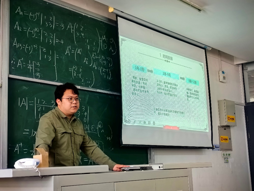 20级保研学生李俊伯结合当前保研相关文件为同学们提出大三阶段的成长发展建议,并分享面试经验;23级研究生邢旭、曹月分享自己的考研经验,从目标确定、备考节点、资源收集等方面展开交流,助力准毕业生明确个人目标,制定复习方案,他们还从研究生的角度分享自己读研半年多以来的感受总结科研及能力收获,以学生视角阐述对于读研选择的理解。