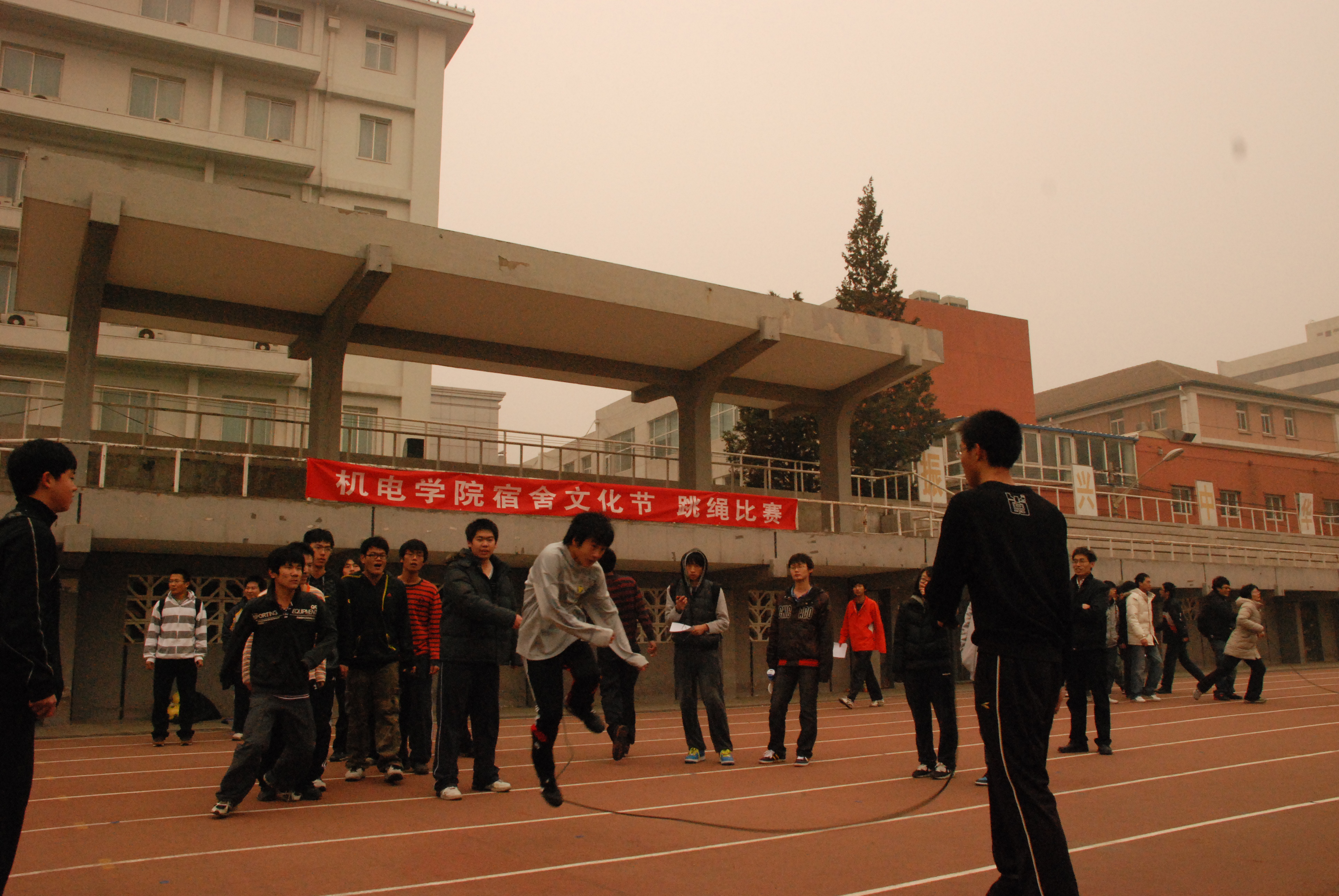 在这里举办宿舍文化节――“团结就是力量跳绳比赛”。友里