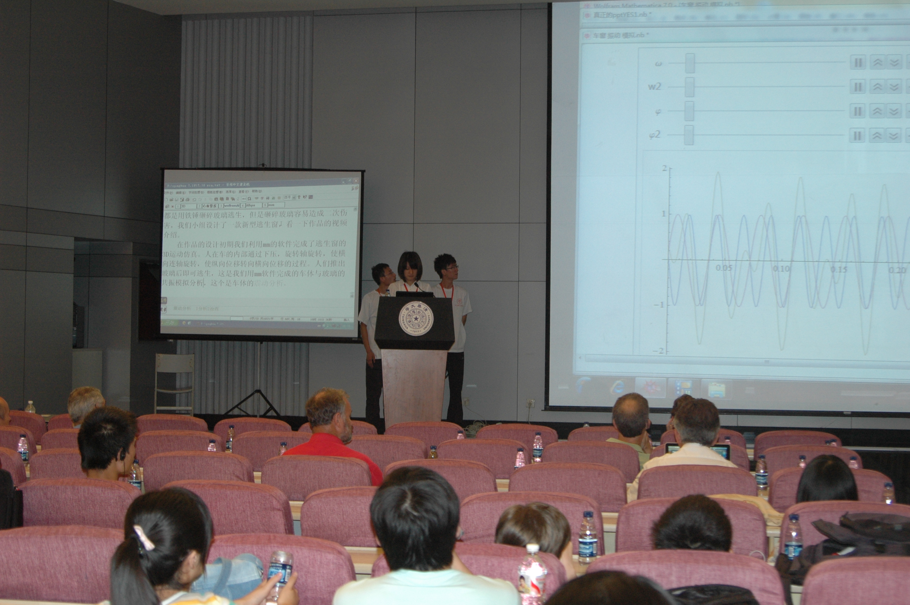 09级的学生在大会上做了“Mathematica软件在救援机械设计中的应用”演示。