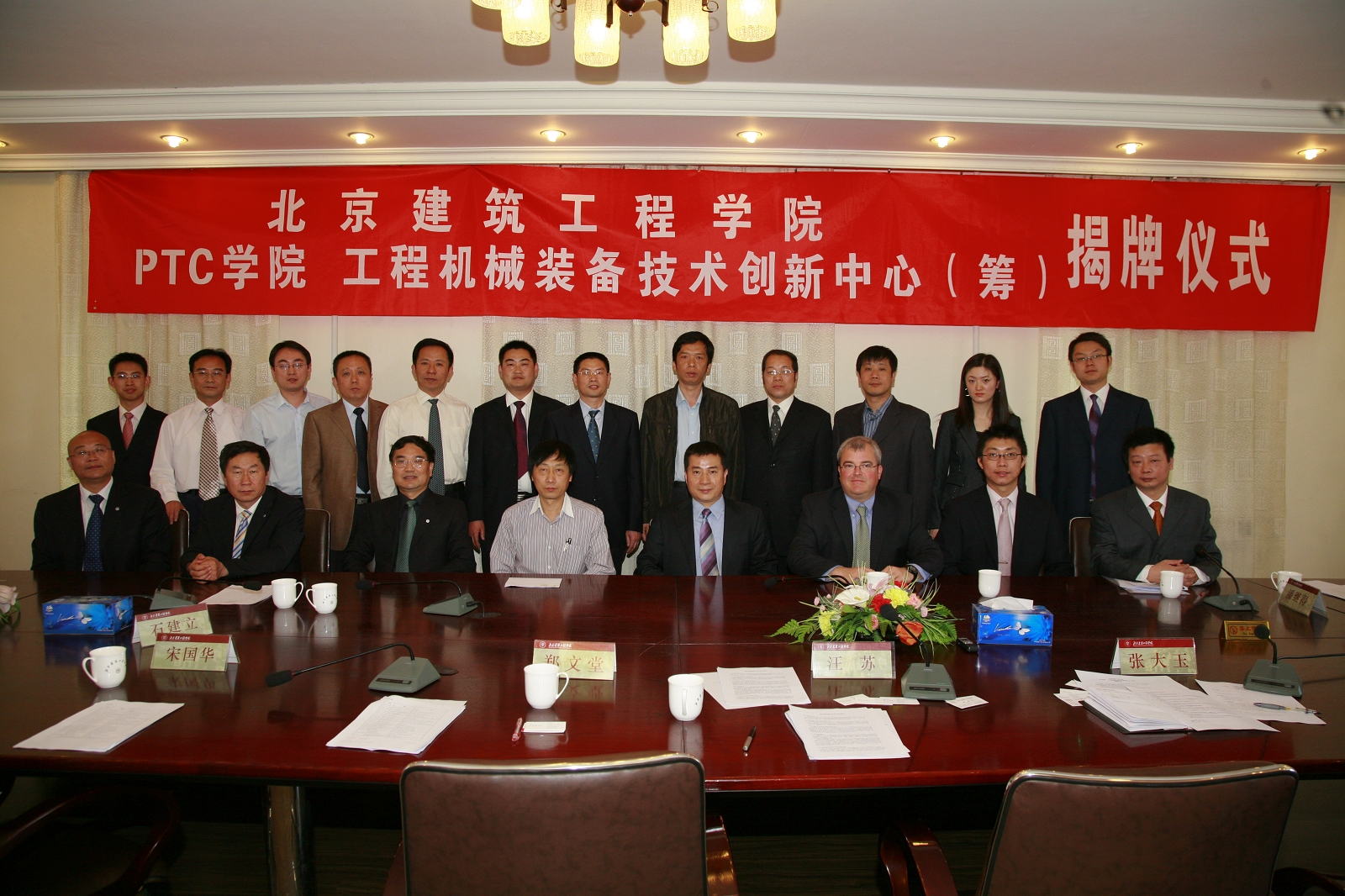 与美国PTC公司等知名企业共建PTC学院以及工程机械装备技术创新中心揭牌仪式在第一会议室隆重举行。美国PTC公司PTC大学副总裁潘继得先生,亚太区教育高级总监Gregory Sisk先生、教育系统大中国区总经理张向阳先生、中国区经理朱豪民先生、北京凯必盛自动门技术有限公司 (KBB)董事长兼总裁石建立先生、北京石油机械厂 副总工黄衍福先生、北京星和众工设备技术股份有限公司副总工程师王海涛先生、PTC公司中国北方区教育渠道经理雒书君先生、多维汇通技术公司副总经理郑明月先生等参加了揭牌仪式,另外参加本次揭牌仪式的还有中国教育报等多家媒体代表。
