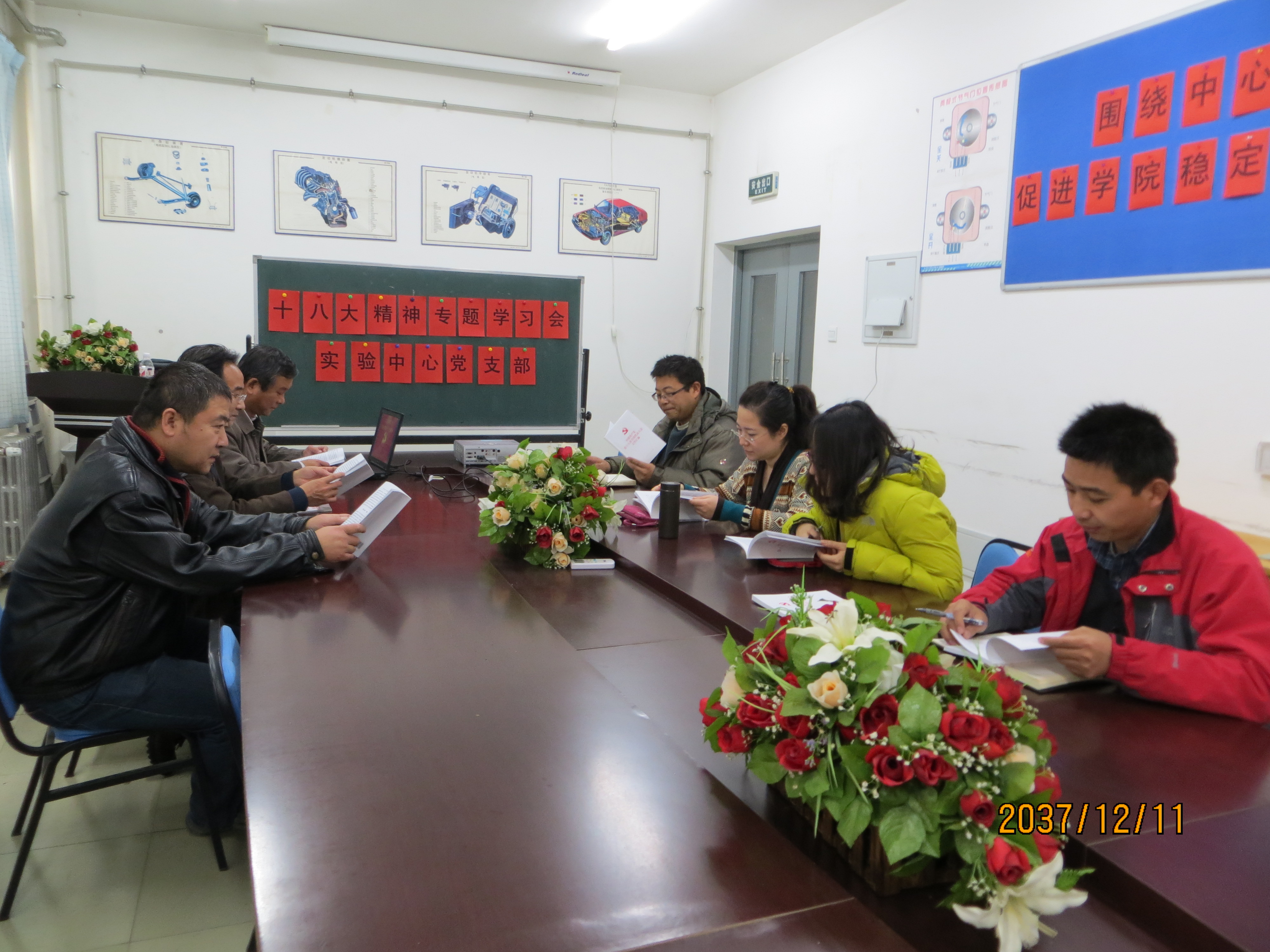 实验中心党支部12月11日,召开全体党员会议认真学习胡锦涛总书记的报告,深入领会报告的精神实质、思想内涵以及新思想、新观点、新举措。通过学习,大家一致认为党的十八大报告鼓舞人心、催人奋进,在理论阐述上有深度,在实践布局上有厚度,在战略目标上有高度,在具体措施上有力度。大家畅所欲言,特别就胡总书记“十八大”报告中指出的努力办好人民满意的教育,让教师们体会到党中央对教育的高度关注和重视;同时,提高教育质量,培养学生创新精神,培养德智体美全面发展的社会主义建设者和接班人,增加了教师教书育人的责任感和使命感。大家表示,要立足本职,不断改进教学方法和教学手段,不断提高教学质量,提高人才培养质量,教好书育好人,在这个平凡的岗位上争创佳绩。