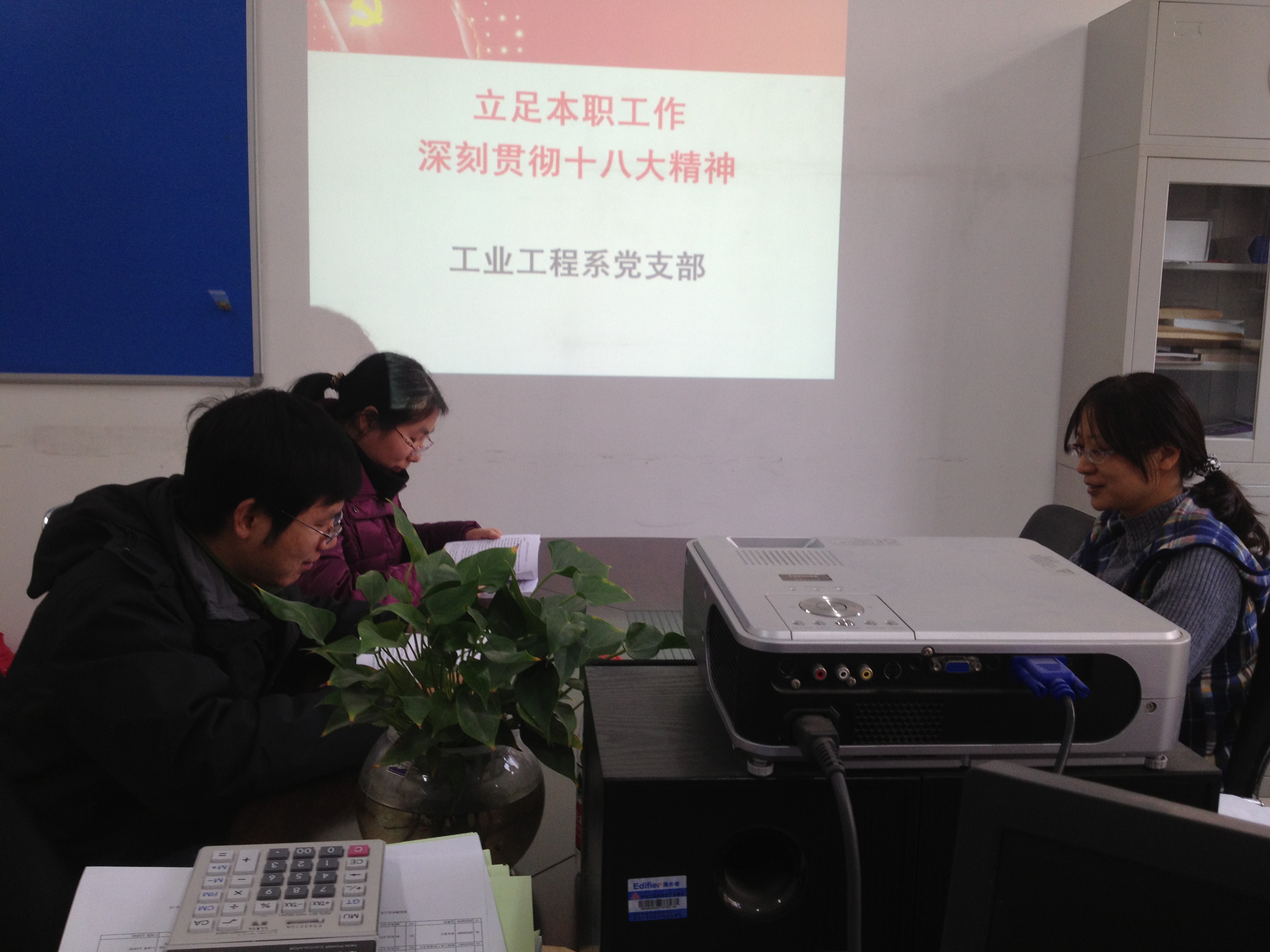 工业工程系党支部12月11日集中学习了胡锦涛同志在中国共产党第十八次全国代表大会上的报告,大家就特色社会主义政治发展道路和推进政治体制改革、改善民生和创新管理中加强社会建设、推进生态文明建设、全面提高党的建设科学化水平等方面的内容进行了深入细致的学习,并展开了热烈的讨论,大家一致认为十八大报告提出的方向是顺应时代潮流、体现人民愿望、推动党和国家科学发展的纲领性文献,我们要认真学习胡锦涛同志的报告,深入研究、深刻领会报告精神实质。