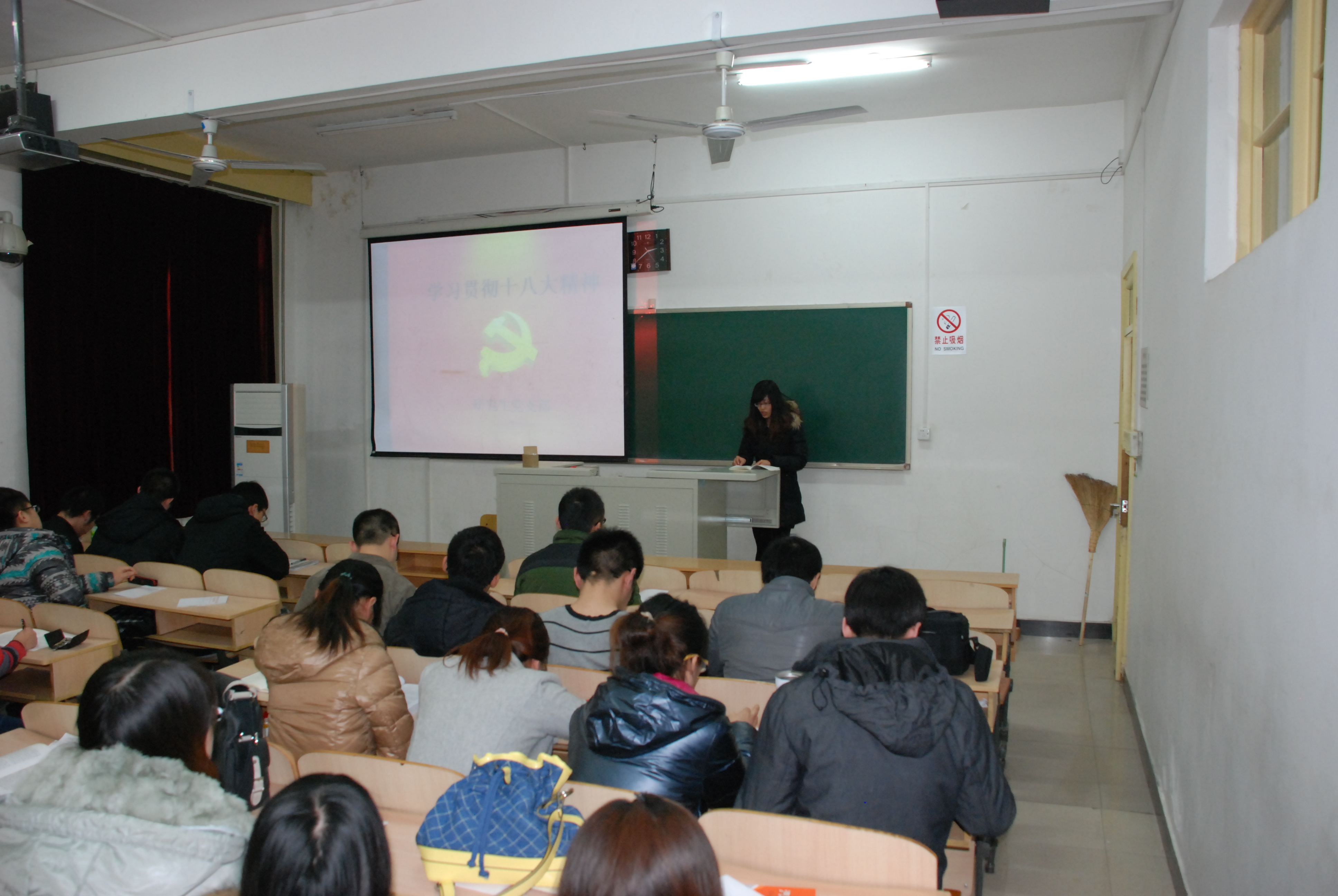 党总支及时制订了《学习宣传贯彻党的十八大精神主题教育活动具体安排》,分两阶段安排了学习宣传贯彻十八大精神的教育工作。并于12月4日召开支部书记会议,传达校党委文件精神和学院党总支学习宣传贯彻党的十八大精神主题教育活动具体要求,教工党支部和学生党支部结合各支部特点,分别制订了学习宣传贯彻党的十八大精神主题教育活动计划。按照学院党总支部署和安排,近日,友里