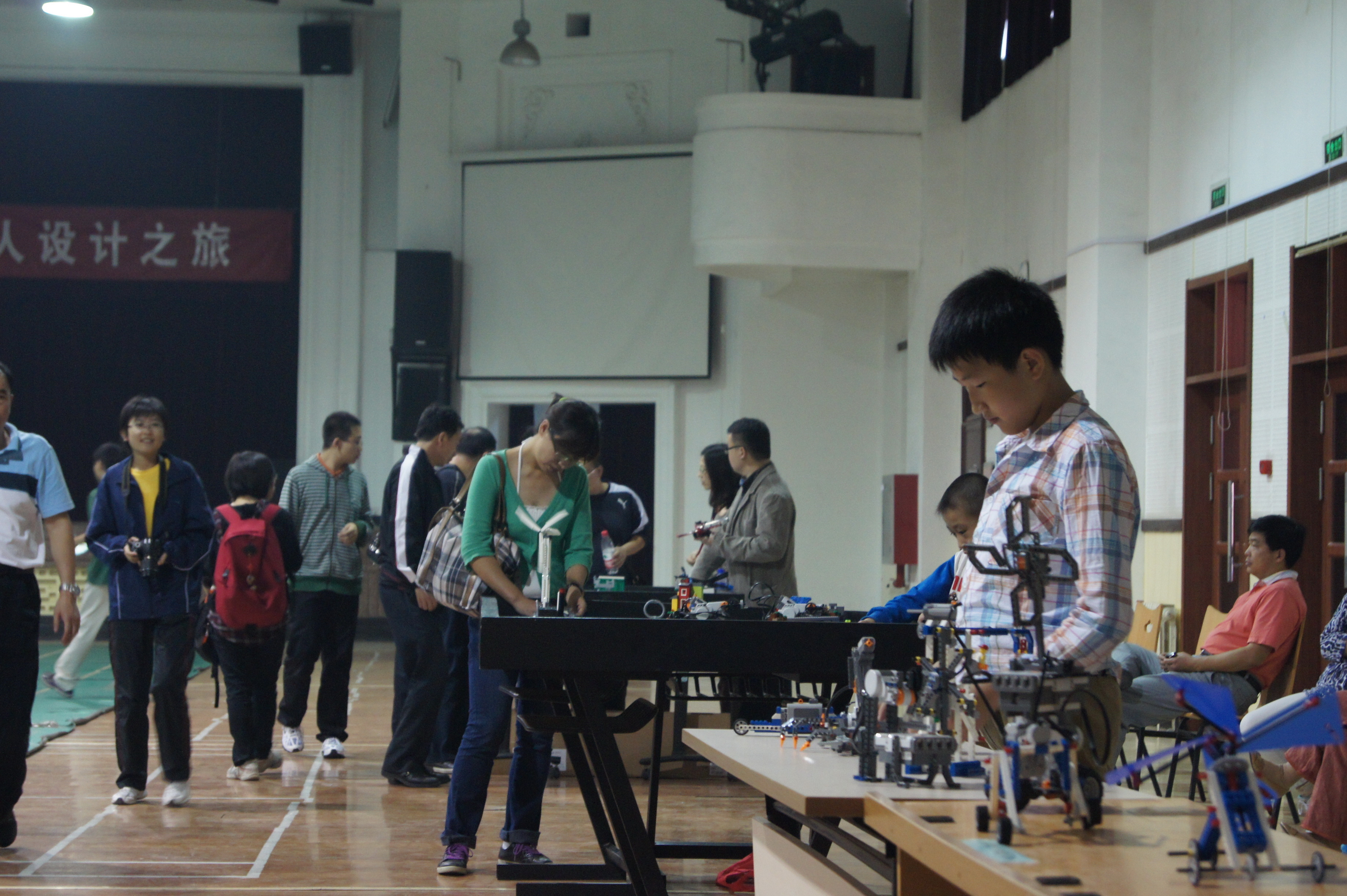 大学生活动中心举行了2011北京国际设计周机器人设计之旅活动,与以往他们在学校实验室设计、制作机器人活动不同的是,本次设计机器人的主题全部与家庭有关,与本届国际设计周“设计北京、善意设计”主题相呼应,包括擦地、爬楼梯、擦鞋、倒水等,为了启发孩子们的设计灵感、让孩子们能够拿出科学合理的设计方案,特地邀请了来自美国的Paula Joseph女士、美国PTC公司的Shelly Shen女士还和中国的孩子们一起做了一个小时的头脑风暴活动。随后同学们迅速展开设计,在两个小时的自由搭建时间内各组都拿出了能够运动演示的机器人作品。最后经过乐高工程师的评审,倒水机器人、爬楼梯机器人等四组作品因设计科学、实用且演示效果好等特点获得优秀作品。下午的活动还吸引了很多学生家长以及学龄前儿童的现场关注。