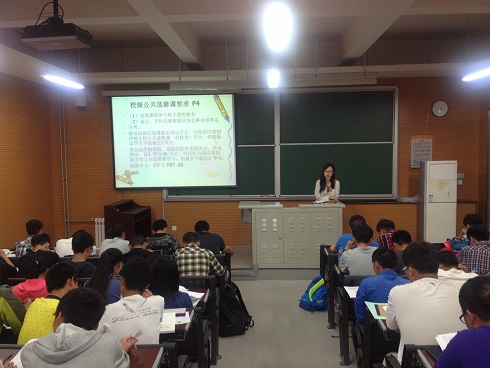 丁老师耐心地为同学们讲解了公开选修课课程类别及修读学分要求,以及本科学生课外能力素质学分管理制度,尤其针对2014版学生手册中创新学分进行了详细说明;丁老师还着重讲解了开学注册、成绩评定、学业警示、考试的有关规定,并就如何正确申请办理休学或复学等做了明确的指导。随后,丁老师为新同学介绍了如何认识和分析培养方案、查询教学进程。
