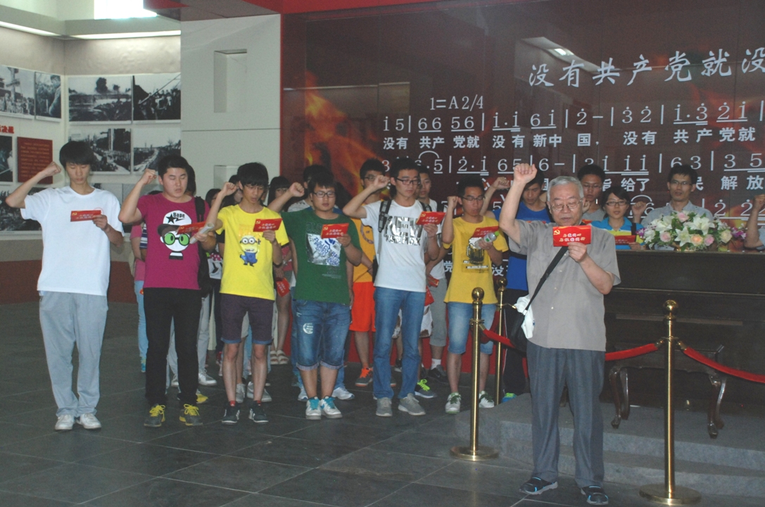 在纪念馆内歌曲作者曾经用过的钢琴前,全体成员随着伴奏唱起了“没有共产党就没有新中国”,那滚烫的旋律和熟悉的歌词熨贴着每一个党员的心,自豪感、钦佩感油然而生。随后,老党员和新党员重温了入党誓言,慷慨激昂,壮志满满。步入《没有共产党就没有新中国》纪念馆,党员们怀着崇敬的心情仔细地观看馆内一件件珍贵的历史文献、照片和实物,大家仿佛回到了那艰苦卓绝的抗日战争年代。在那十分艰苦的环境中,党的宣传工作者以坚定的共产主义理想信念和对党的无限忠诚和信赖,满怀豪情的创作出《没有共产党就没有新中国》的革命歌曲,激励着共产党员和全国人民从胜利走向新的胜利。