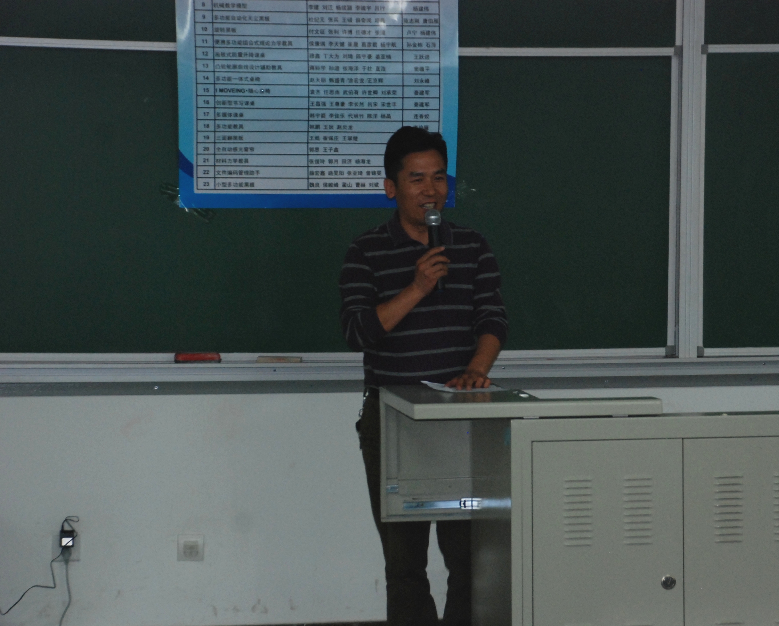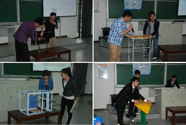 本次大赛的主题为幻•梦课堂,内容为“教室用设备和教具的设计与制作”。每一组参赛作品都凝聚着指导教师的智慧和设计者的心血,各种新颖的课桌椅、黑板、实验台,以及各门学科授课时所需的教具,参赛选手展示的实物模型五花八门,目不暇接。经过三个小时的精彩答辩,共评选出一等奖2项、二等奖4项、三等奖6项、最佳创意奖2项。优秀作品将代表学校参加首都高校第七届机械创新设计大赛。校图书馆馆长王锐英对比赛进行了点评,王馆长建议各参赛组在设计作品时充分考虑受用人群的需求,在实物模型功能展示方面下功夫,努力做到精益求精。首都高校第七届机械创新设计大赛评委王跃进老师介绍了北京市比赛的具体情况,希望各参赛组严格按照比赛要求,规范文本,完善作品功能,保证质量。