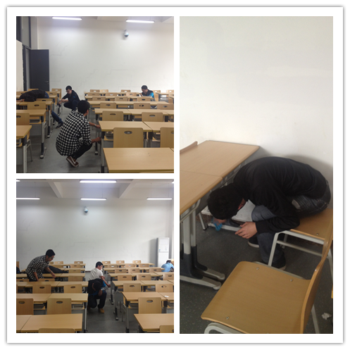 近二十名志愿者分为三组,分别拿着水盆、抹布等工具在物业阿姨的指导下进行教室课桌椅的清洁工作。同学们热火朝天的擦起了桌椅和黑板,还与有经验的阿姨探讨如何能擦的又快又干净,擦完后再重新摆放桌椅;还有的拿着专用刷子清洗黑板,没想到擦黑板也需要技术,不然会在黑板上留下难看的白印……课桌腿清洁时需要弯着腰擦,很不舒服很累,但同学们依旧干劲十足,有条不紊的积极劳动着,教室面貌很快就焕然一新。