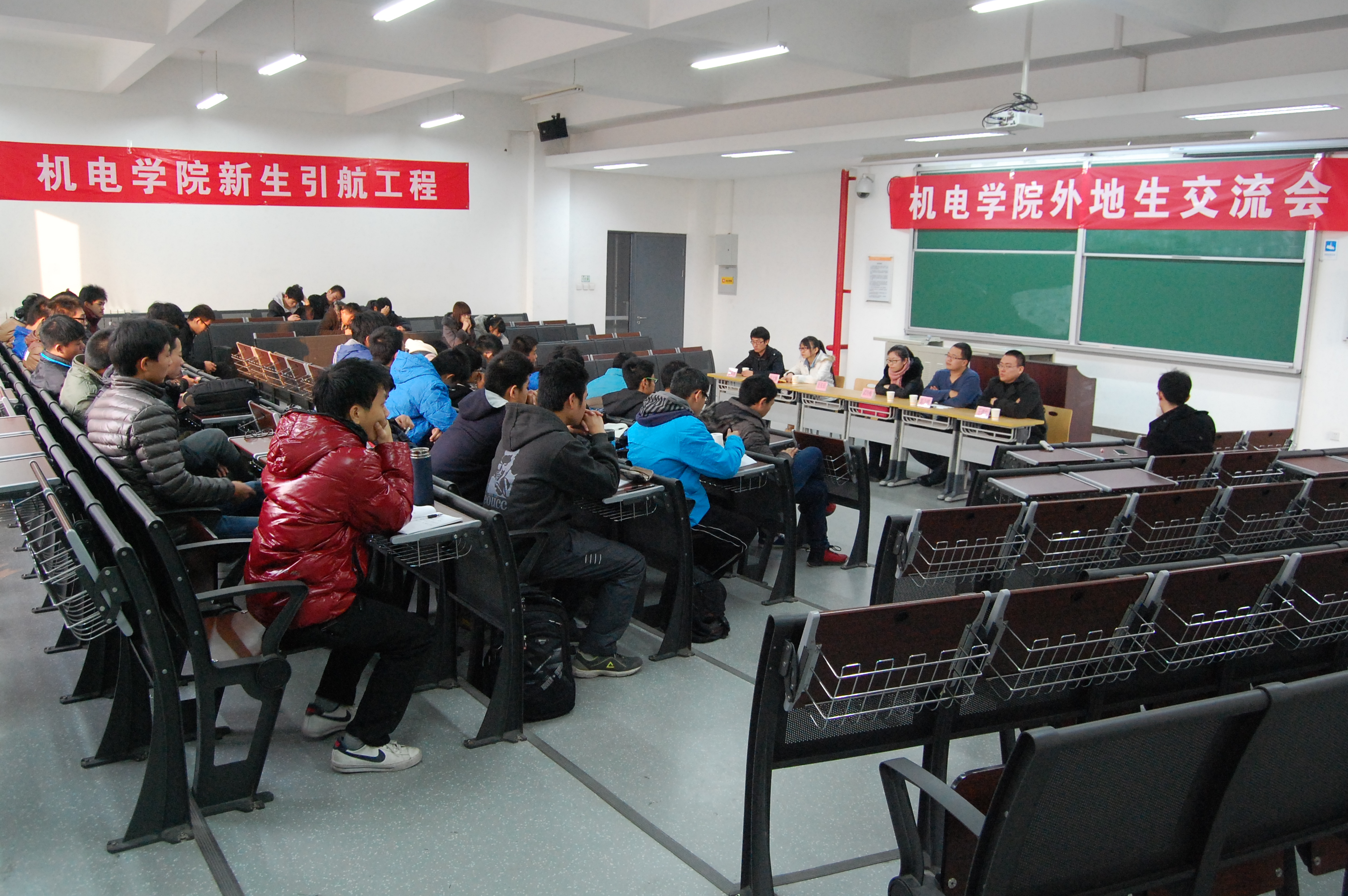 研究生的学长们。学院党总支副书记汪长征老师,13级全体外地生参加此次交流会,辅导员曾祥渭老师主持会议。