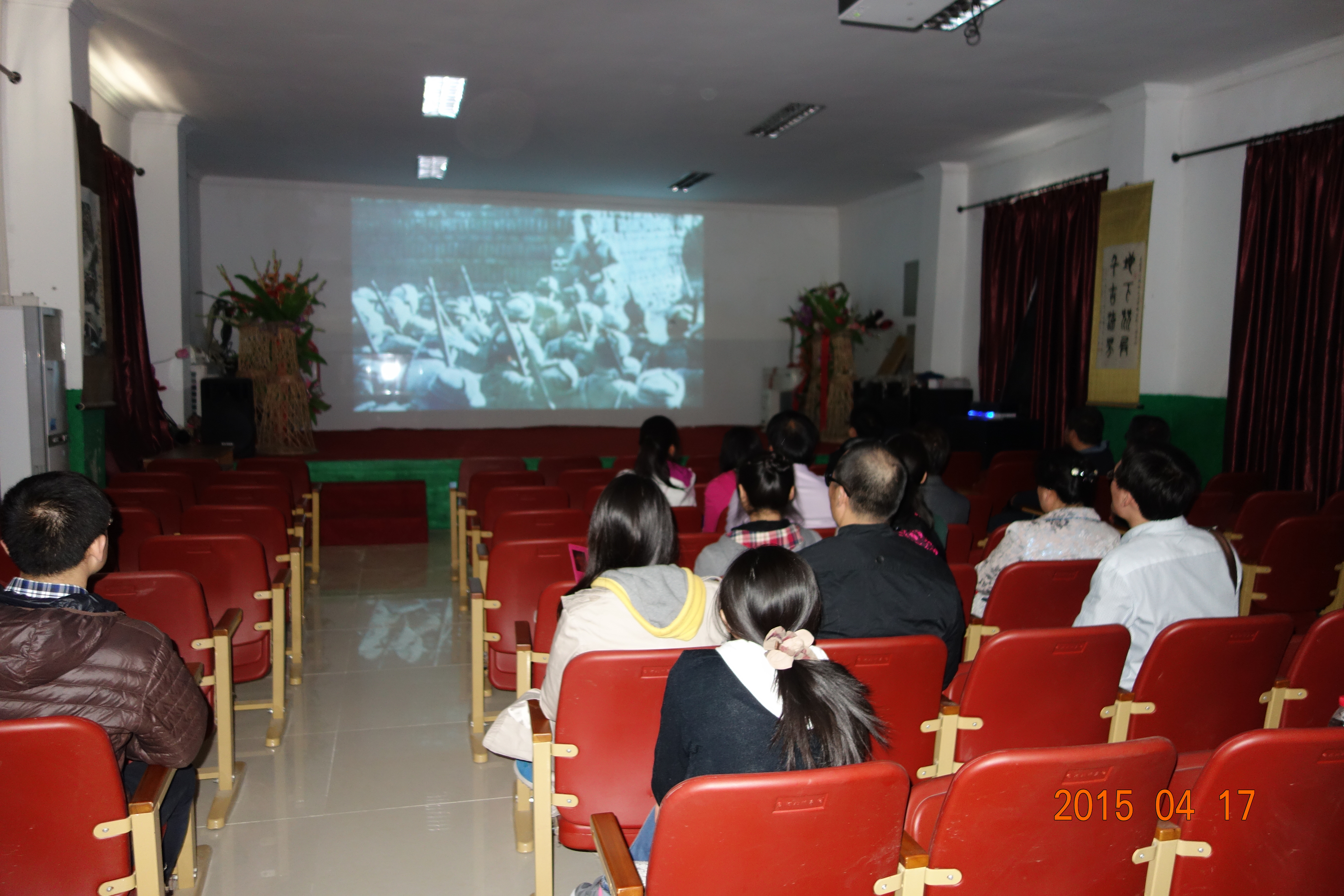 踏上承载着历史的石阶走进大门,首先步入眼帘的是正对大门墙壁上浮雕,浮雕栩栩如生的表现了当年情报站中发电波和护送人员的场景。随着工作人员的引导,党员们在影像资料室观看了有关平西情报联络站的纪录片。纪录片为大家直观呈现了硝烟弥漫战火纷飞的年代,平西情报联络站在抗日战争、解放战争中的重要作用,情报工作人员不畏艰险,不怕流血牺牲,承担着电讯联络、接送情报等工作,为延安转运物资,护送大批爱国青年、革命志士和国际友人往来于延安和敌占区,为晋察冀根据地建设,为祖国解放和人民的幸福做出了重大贡献。