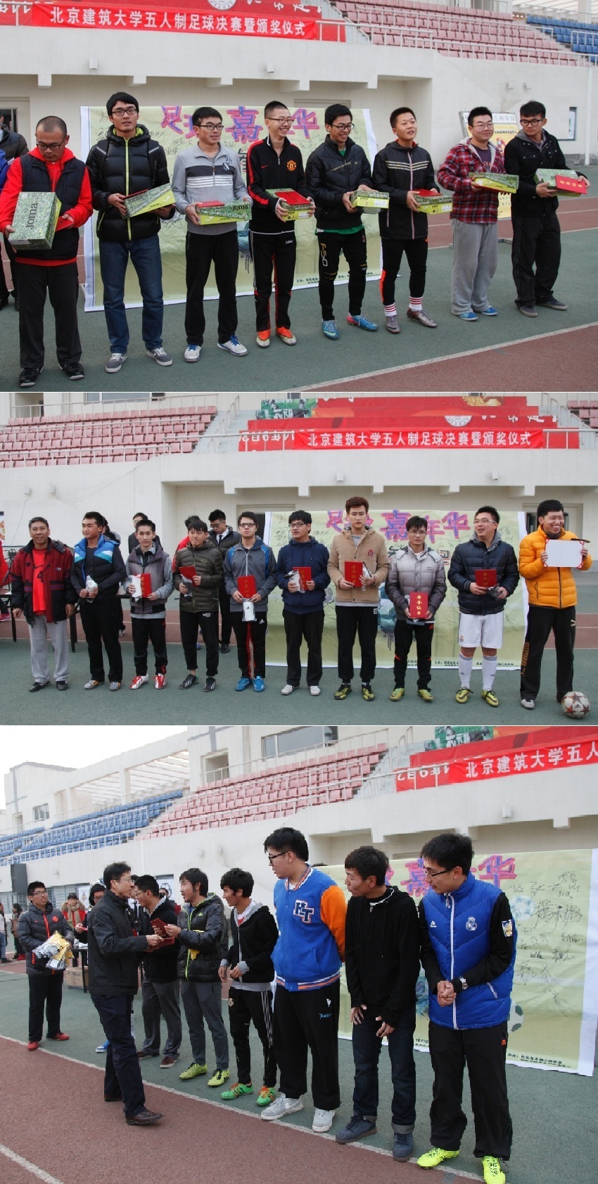 、测绘学院承办的五人制足球比赛落下帷幕。“建筑兴城”队勇摘桂冠,“教职工”队和“对不”队分获亚军和季军。