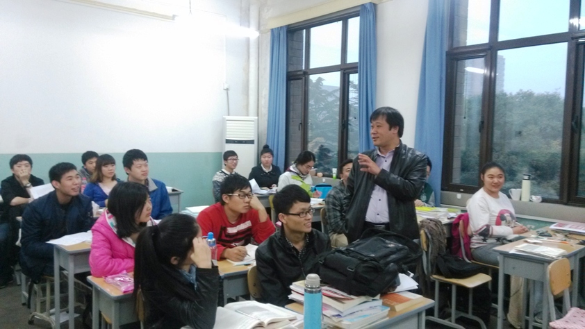 院长杨建伟、党委副书记汪长征、2014级研究生钱盈、陈忠伟、秦震一起来到学院的考研教室,为准备考研的同学们加油鼓劲,与大家交流心得。