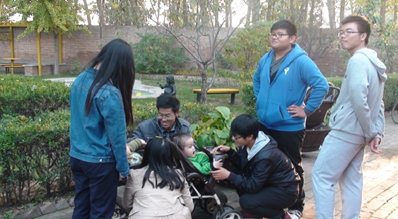 到达目的地之后,在孤儿院负责人的带领下,同学们参观了整个家园构造,详细了解了孩子们的故事,并与孩子们一起荡秋千,玩沙子、转椅等游戏,度过了一个美好的下午。