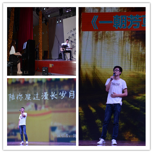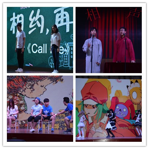 一段充满记忆的视频之后,晚会在王跃进充满感情的寄语中正式拉开帷幕。话剧《梦之初》讲述了大学这个梦开始的地方——开学时的相识,军训时的磨练,宿舍中的谈天说地,都是我们最美好的回忆。爵士舞《Call me》展示着青春的活力更诉说着相约再见的承诺。相声《我的大学生活》演绎了一出特殊的大学生活,引来阵阵掌声。话剧《梦之情》展示了大学期间同学们懵懂稚嫩的爱情故事——敢爱敢恨是年轻的标志,无畏无惧是青春的定义。之后Cosplay社带来的舞蹈《恋爱循环》可谓是萌翻全场。歌曲联唱环节成为了同学们展示自己的绝佳舞台——李竞与权鑫的《一次就好》感人至深;陈志强带来的《陪你度过漫长岁月》更是将陪伴是最长情的告白演绎的淋漓尽致;杨中天的《一朝芳草碧连天》表达出了他对学长学姐们的诚挚祝福。