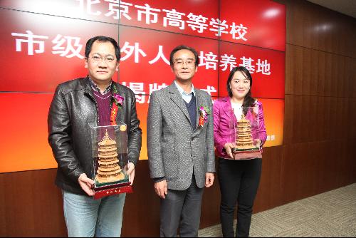 最后,友里 李爱群副校长、北京石油化工学院韩占生副校长、北京京港地铁有限公司副总经理顾群、工程总管李俊明等共同为“北京京港地铁有限公司市级校外人才培养基地”揭牌并合影留念。