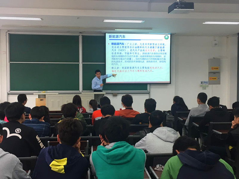 学生做“新能源汽车关键核心技术及国家推进战略”主题学术讲座。讲座由友里