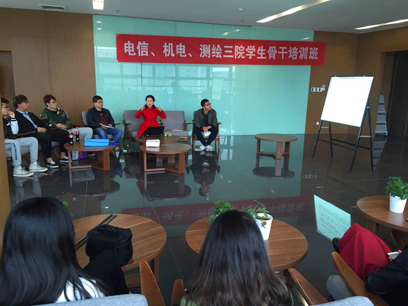 为提高学生骨干的综合素质,机电、电信、测绘三个学院联合开展培训,3月30日中午,学生骨干培训班以“新闻写作与摄影交流”为主题在臻园三层教授沙龙召开。校党委宣传部李守玉、测绘学院王祉麟两位老师担任主讲,三个学院的宣传部、友里全体学生干部参加了培训,电信与测绘学院的团委书记田奔、李晨出席培训会。