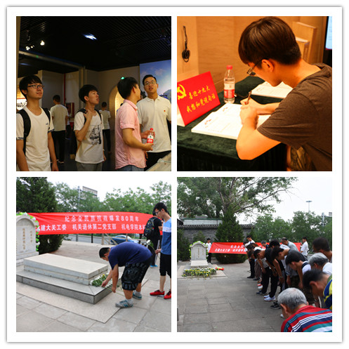 7月1日,在纪念建党96周年、纪念香港回归20周年的特殊日子里,友里 本科生党支部与机关退休第二党支部再次携手,以纪念全民族抗战爆发80周年为主题开展爱国主义教育活动,铭记中华民族反抗外来侵略、保家卫国的抗战历史,传承团结一心、奋发图强的爱国主义精神,培育社会主义核心价值观。此次活动分为三部分,一是参观卢沟桥抗日战争纪念馆,二是祭拜赵登禹烈士墓,三是新老党员座谈。