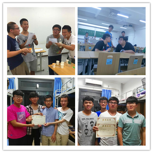 本次活动设有疯狂填单词、听说读写、你画我猜、味觉大挑战、环定终生、谁是卧底、花式绕口令和按摩大师八个比赛项目,两个赛场高潮迭起,精彩纷呈。在疯狂填单词比赛中,所有同学都绞尽脑汁,有的因为找不到字母抓狂,有的因为认识的单词太少而崩溃,干脆自创;你画我猜的题目有些简单,看着实时记录单上不断被刷新的记录,简直就是速度与激情的结合;味觉大挑战应该是最有趣的了,同学们吃的是刺激,痛并快乐着;谁是卧底考验了室友之间的默契;花式绕口令需要寝室里一个转呼啦圈还能绕英文口令的大神;按摩大师比赛中大家用尽洪荒之力,最厉害的寝室竟然在两分钟之内在指压板上跳绳突破了300个!一个个精彩的瞬间定格在赛场上,一张张笑脸洋溢在青春里。