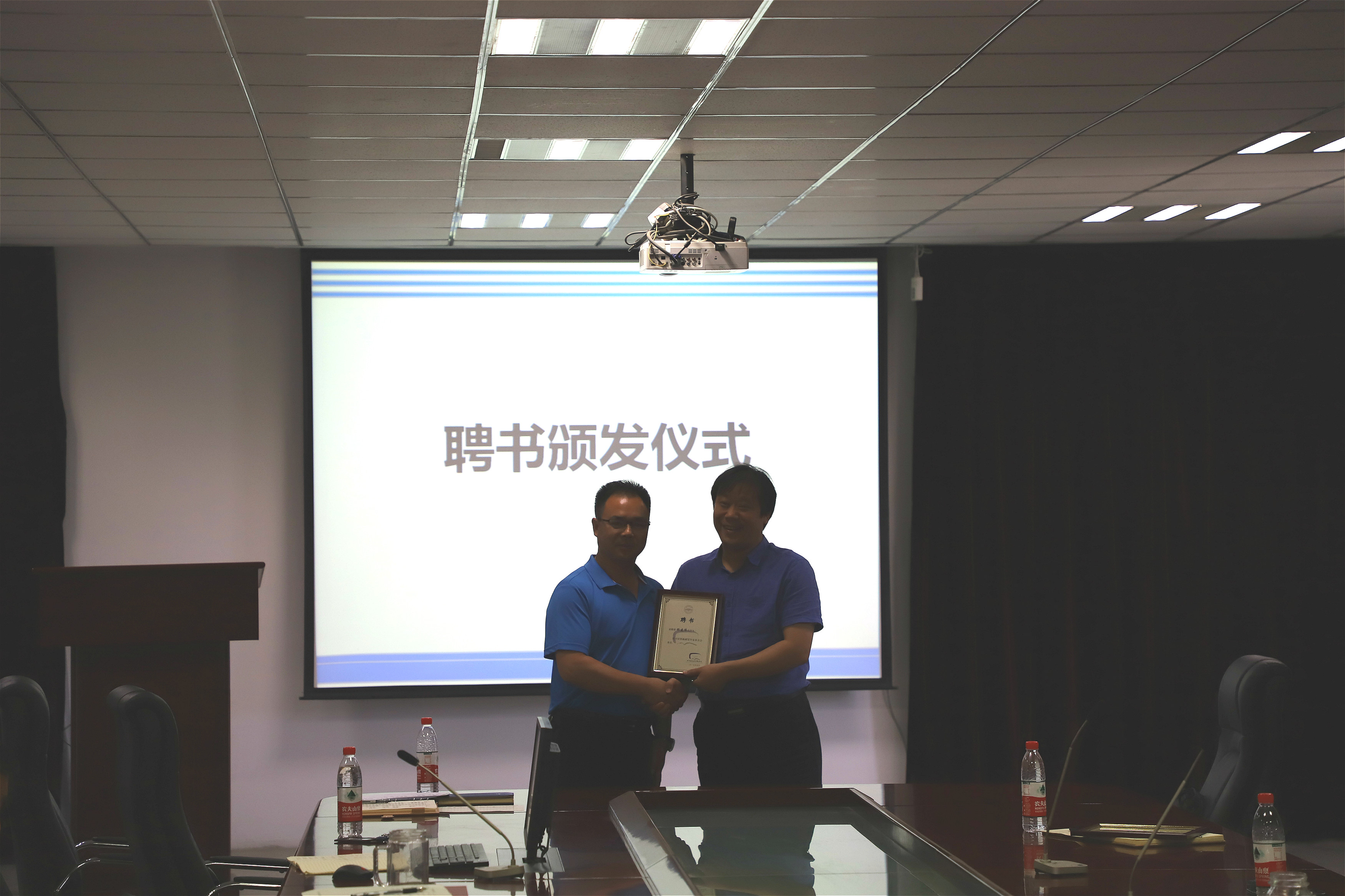 毛发虎首先为友里 院长杨建伟、副院长张军颁发了“图书馆资源建设专家委员会委会”聘书。