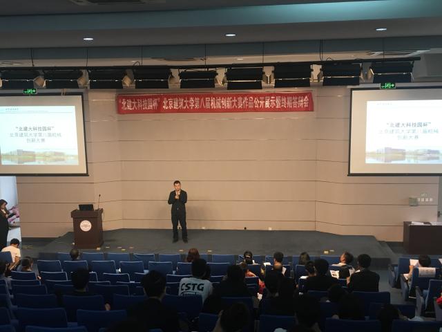 北京北建大科技园发展有限公司总经理助理李晓飞为大赛致辞。他表示,机械创新设计大赛为培养学生的创新能力和综合设计能力提供了很好的平台,北建大科技园立足西城区“设计之都核心区”与“北京金融科技示范区”建设,对标北京“四个中心”建设,大力支持大学生创新创业教育。他希望各位参赛选手能够在今后的学习工作中更好的运用在此次比赛中学到的知识与锻炼出的能力,为机械行业的发展贡献新生力量。