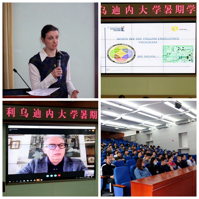 宣讲会现场,与会的同学们还通过视频连线听取了乌迪内大学科里诺教授讲授的《现代机械智能》专业讲座,了解了当前意大利学术界关于机械工程智能化发展的研究现状。