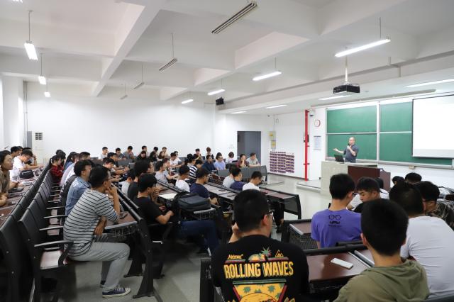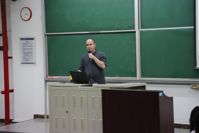 Marko Vilotic作题为《Severe plastic deformation by V-shape dies》的讲座,他从材料加工方法、挤压方法、成分构成等多个方面详细讲述了塑性变形的概念与过程,并与在场学生进行了交流互动,针对大家提出的问题进行了详细而生动的解答。