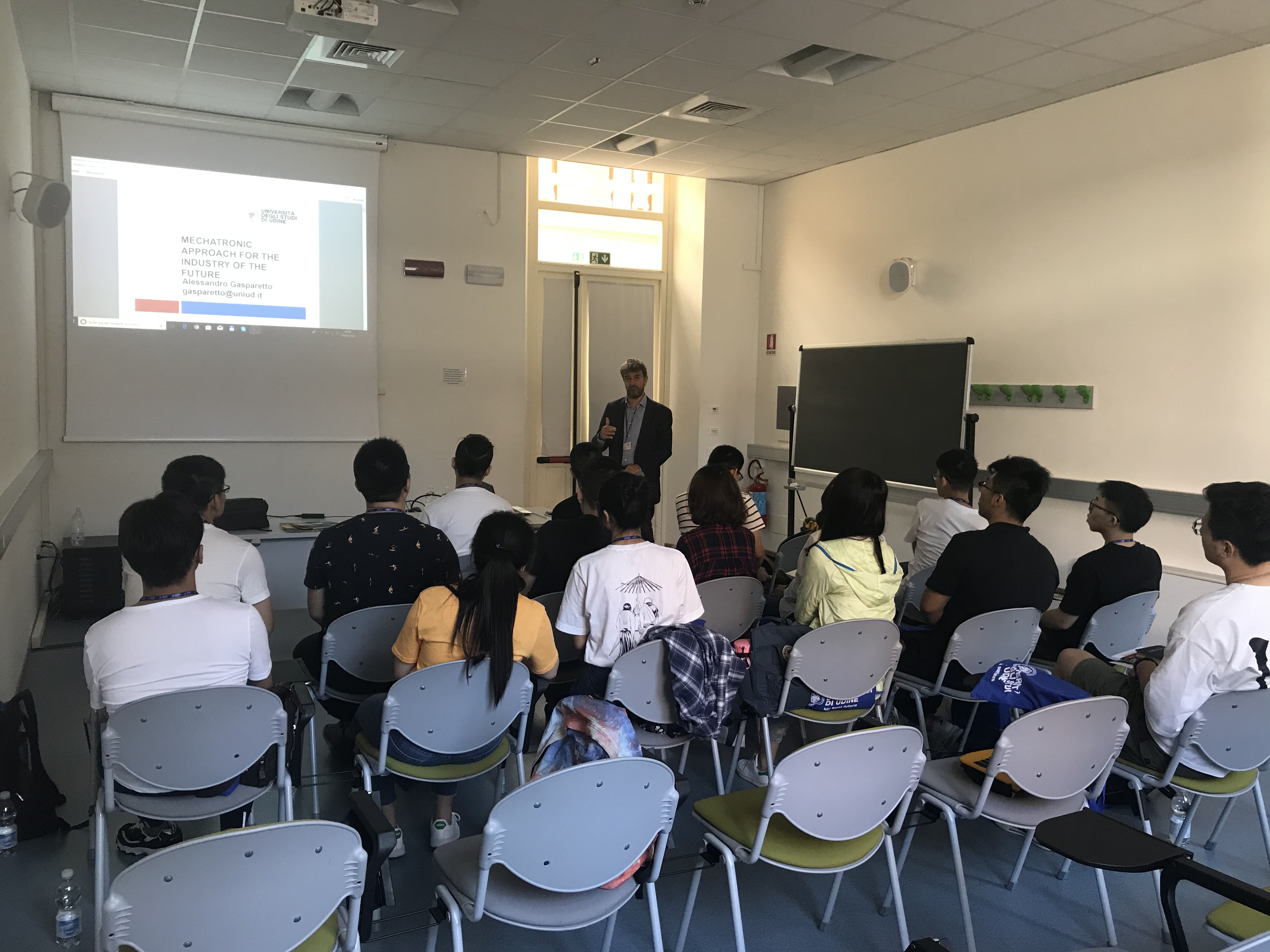 在意大利乌迪内大学为期半个月的学习期间,友里 师生参加了该校组织的关于机器人与力学理论、自动控制理论导论、信号与图像处理与编码基础、人工视觉导论、人工智能与并行计算体系结构、无线通信系统在工业中的应用等相关专业课程学习。同学们与当地师生就人工智能技术、机电一体化发展技术、机械技术应用等热点问题进行了深入的探讨与交流,收获颇丰。