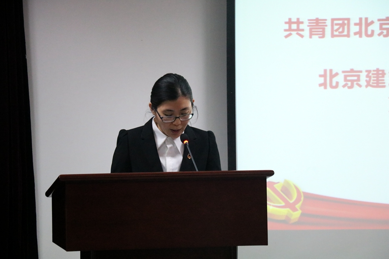 党委副书记陈娟在讲话中肯定了学院上一届团委的工作成绩,并对团员青年和团干部提出了四点希望:加强理论学习,坚持理论武装;加强学院团学组织建设,凝聚青年力量;加强学习,增长本领;弘扬北建大精神,为实现建大梦贡献力量。