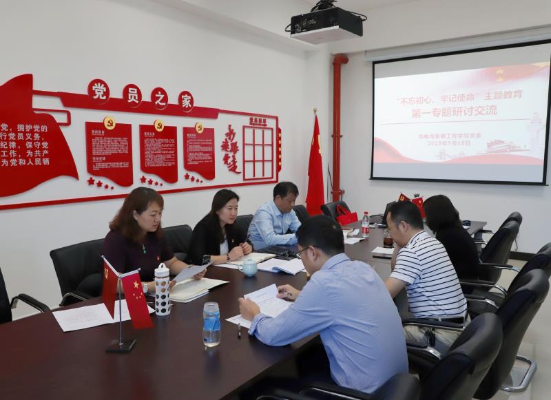 党委召开了“不忘初心、牢记使命”主题教育第一专题研讨交流,学院党委书记赵海云主持会议,院长杨建伟、副院长刘永峰、党委副书记陈娟、副院长王传涛参加研讨交流。学校第四巡回指导组组长、校工会常务副主席刘艳华出席会议。