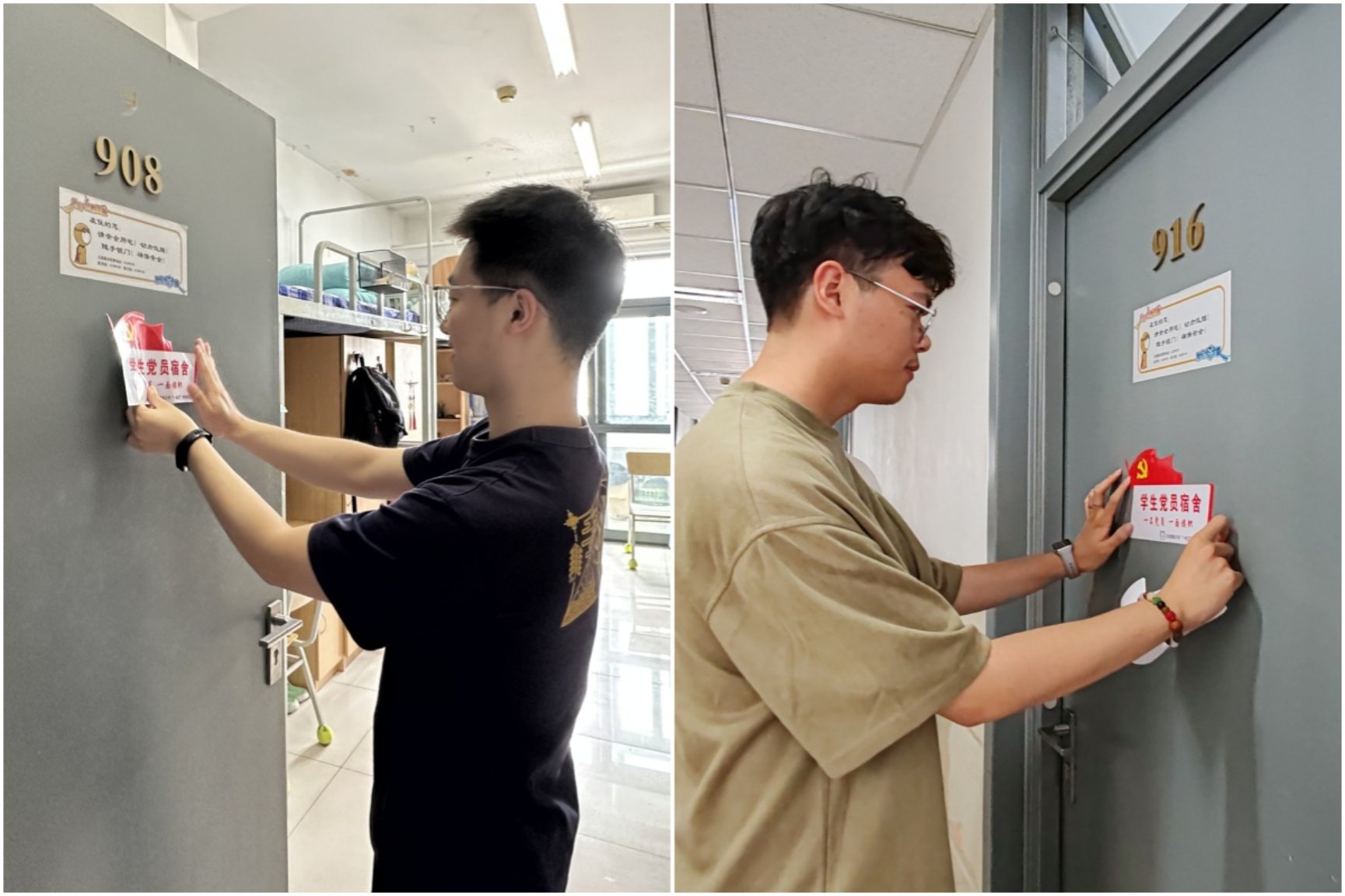 之后,与会老师逐一向党员代表授予“学生党员宿舍”标识牌,并和同学们共同见证党员宿舍挂牌。