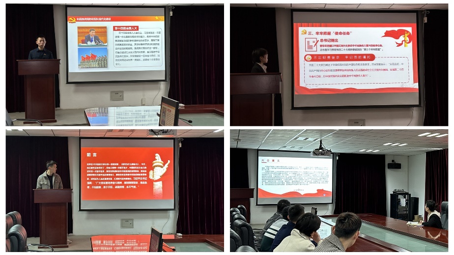 各支部参赛选手分别以《青年逢盛世,奋斗正当时》、《党的二十大精神解读——五个牢牢把握》、《请党放心,强国有我》、《牢记领袖嘱托,担当国防重任》为题,以视频、图片等形式,聚焦党的百年光辉历程,分享个人学习教育的收获感悟。有的讲述了革命先烈英勇无畏,不惧牺牲的英雄事迹;有的从身边的青年党员讲起,述说他们默默坚守,敢于吃苦,勇于担当,甘于奉献的感人故事;有的用自己入伍2年的特殊经历,抒发对党的忠诚、对祖国的热爱、对使命的崇敬……一个个故事,一段段历史,真情诠释共产党人不忘初心、牢记使命的责任担当。