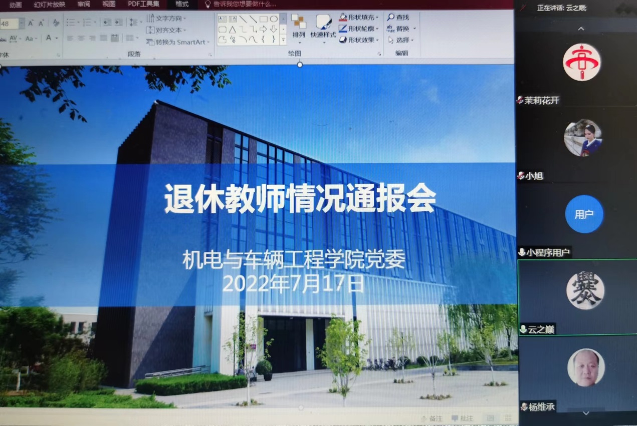 7月17日,学院党委召开退休教师情况通报会,全面部署暑期退休教师入校申请工作,会议由党委书记李大伟主持,学院退休教师线上参会。