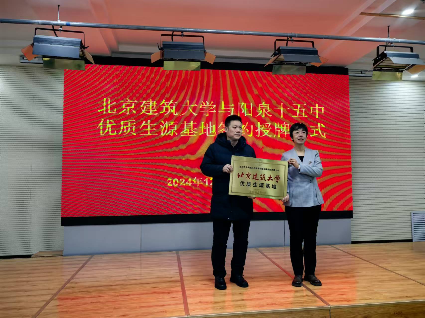 在阳泉十五中,校长高瑞斌、副校长赵军华、副校长郭丽萍,办公室、政工部负责人,高三年级主任等参加座谈会。高蕾向阳泉十五中授予“优质生源基地”牌匾,并赠送礼物。