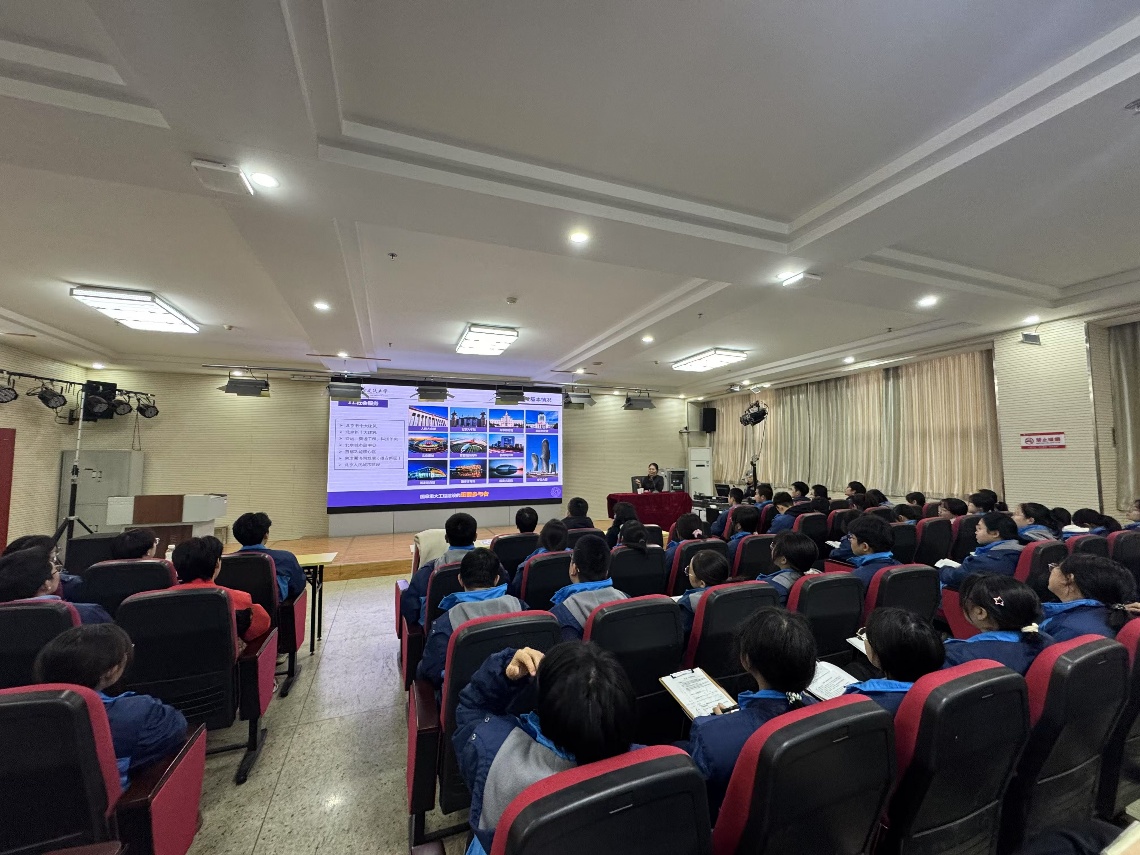 挂牌仪式结束后,周素霞为两校学生进行了高考招生宣讲,详解介绍了友里 的办学历史和基本情况、学科专业以及招生录取情况,并以车辆工程专业为例介绍了学生培养的成果。