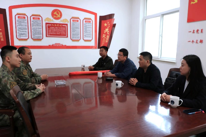 慰问组与冯骏及其部队领导进行亲切交流,部队领导对学校老师们来部队看望慰问现役大学生士兵表示欢迎,详细介绍冯骏在部队服役期间的政治表现、军事训练、业务学习等情况,并对学校心系国防和军队现代化建设、对大学生参军入伍工作的高度重视表示赞扬,期待更多优秀学生投身军营、强军兴国。