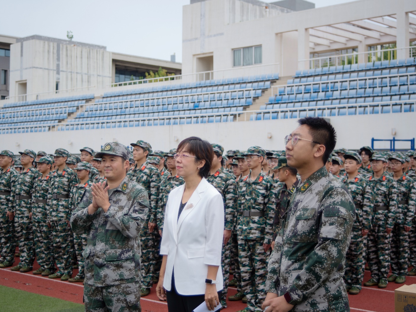 高蕾对同学们所展现出的昂扬斗志和不怕苦不怕累的精神给予赞许,代表学院领导班子,向辛勤工作在一线的教官们表示崇高敬意何诚挚感谢。他指出,军训是大学生活的第一堂必修课,这堂课意义非凡,不仅是锻炼身体素质,更是磨砺精神品质的重要一课。她嘱托新生,要服从教官指挥和军训安排,严格训练,培养吃苦耐劳、奋勇争先的精神,继承和发扬学院“积聚砥行,彻鉴致远”的院训精神,接过这个接力棒继续为祖国建设做出贡献。同时提醒同学们注意安全,以更加饱满的精神状态圆满完成军训任务。