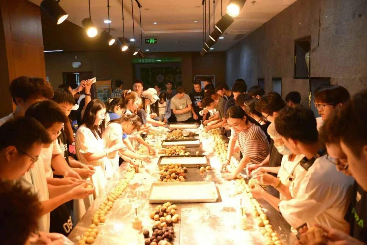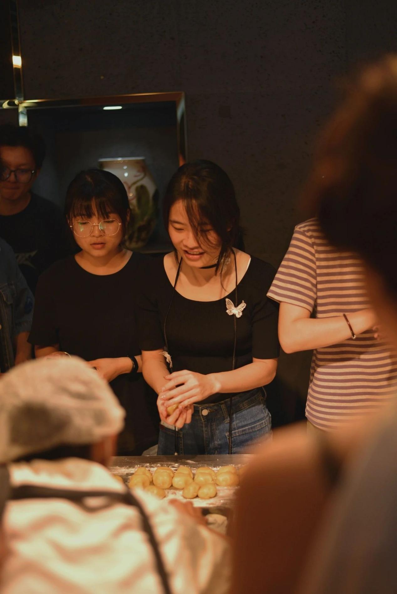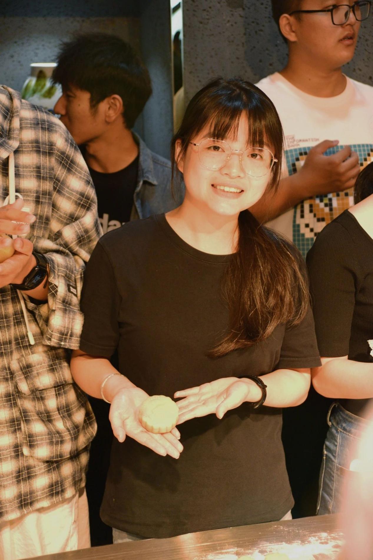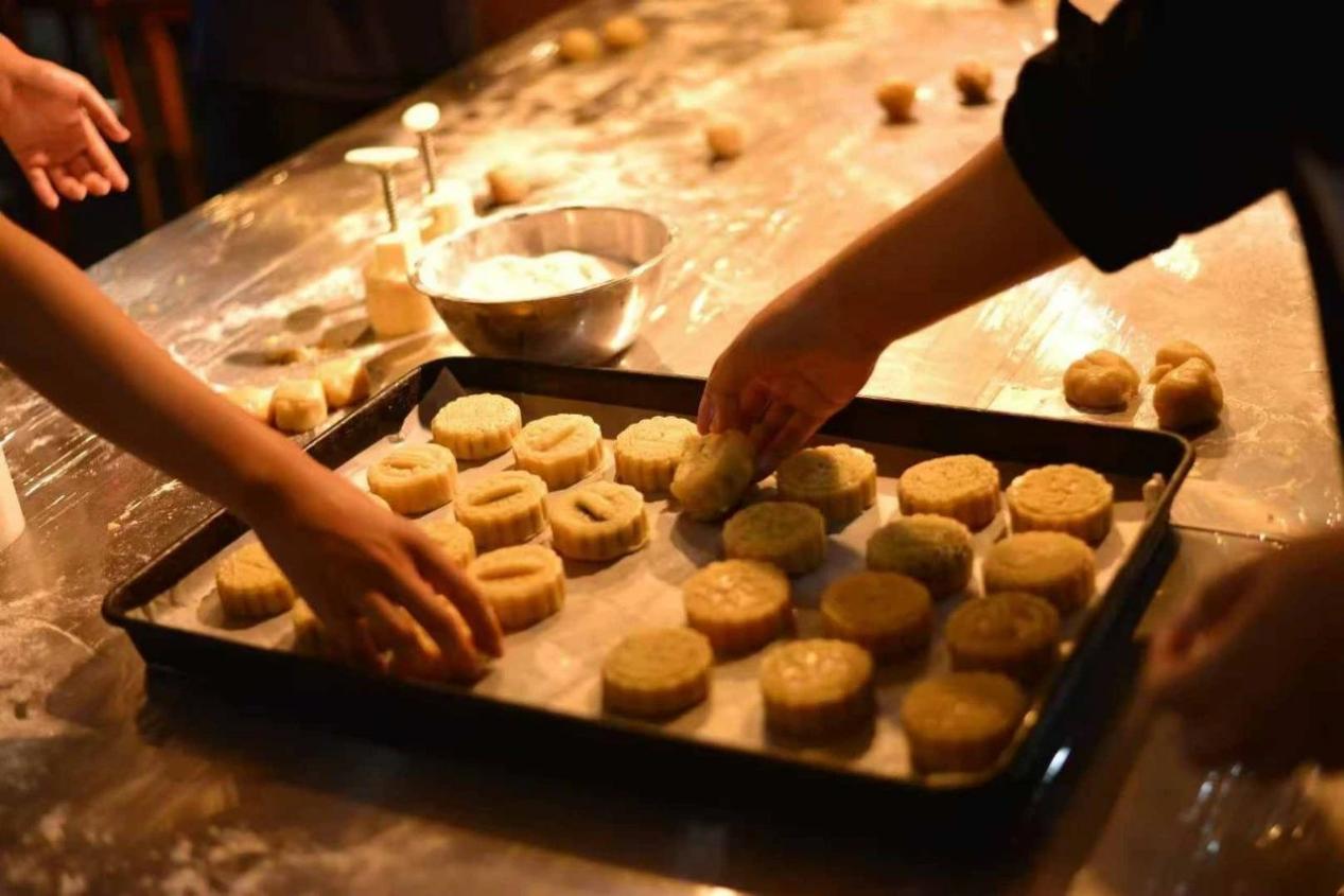 一双双灵巧的手下,月饼一个个精致的脱模而出。当看到自己亲手创造的成果时,每个人的脸上都不由自主地洋溢起了满足与喜悦的笑容。