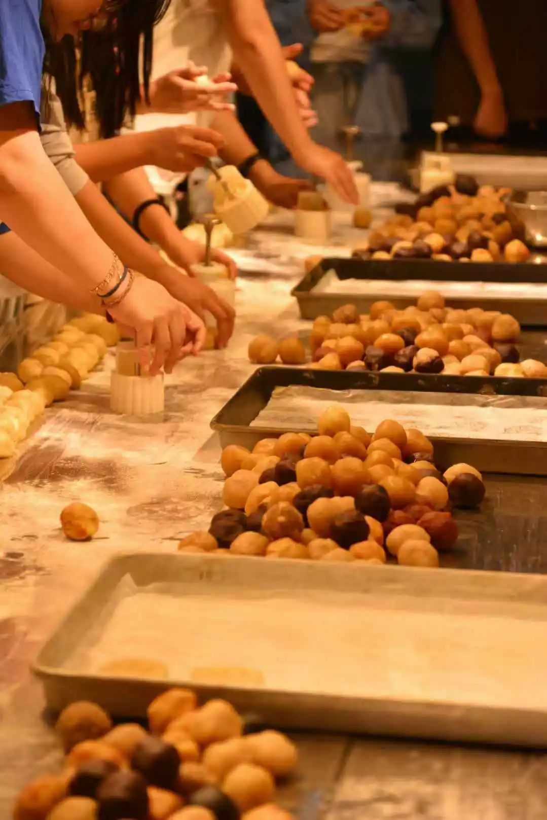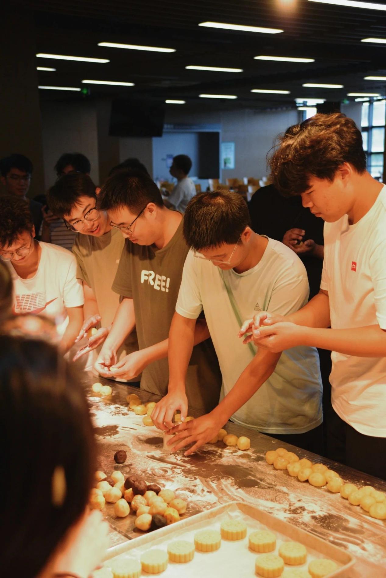 在包月饼环节中,老师同学们在食堂师傅的指导下认真学习体验了揉面团、包馅料、套模具等过程。从揉捏柔软的饼皮到小心翼翼地填入馅料,再到最后用模具压制出精美的图案,同学们相互协作,齐心协力地投入到每一个细节的制作之中。