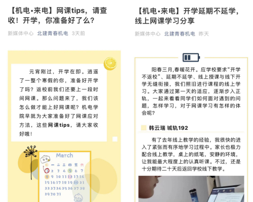 学院学生会认真组织策划网课体验分享专题,征集线上学习建议,分享线上课堂学习、交流互动、课业联系的好方法;分期展示不同学习阶段的线上课程体验,营造良好的线上学习氛围,为新学期开学返校打下坚实基础。