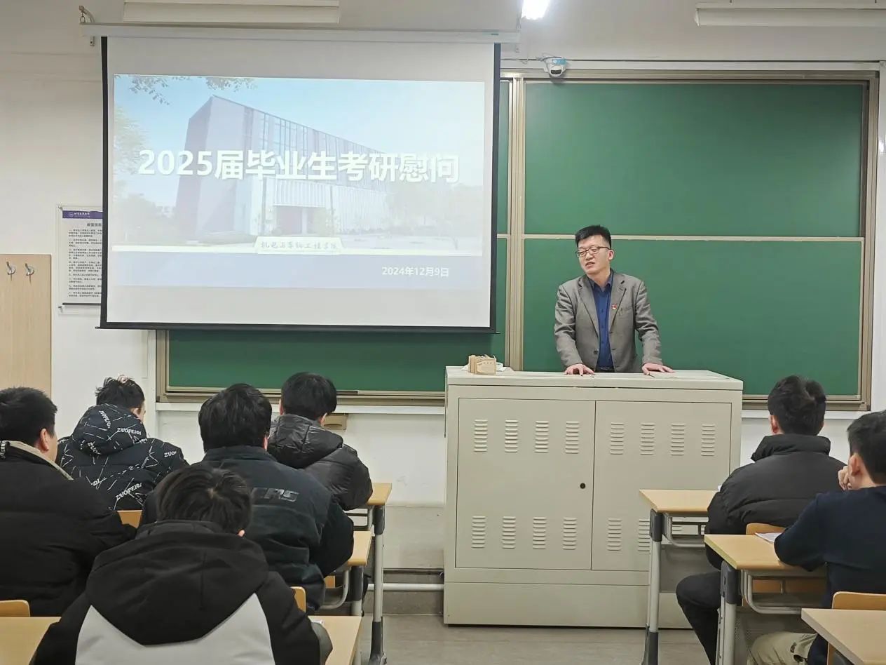 班子成员在学C312慰问考研学生代表。党委书记李大伟,执行院长王衍学,党委副书记李文超,科研副院长姚德臣为考研学生送去真挚祝福,2021级辅导员傅景泉主持活动。