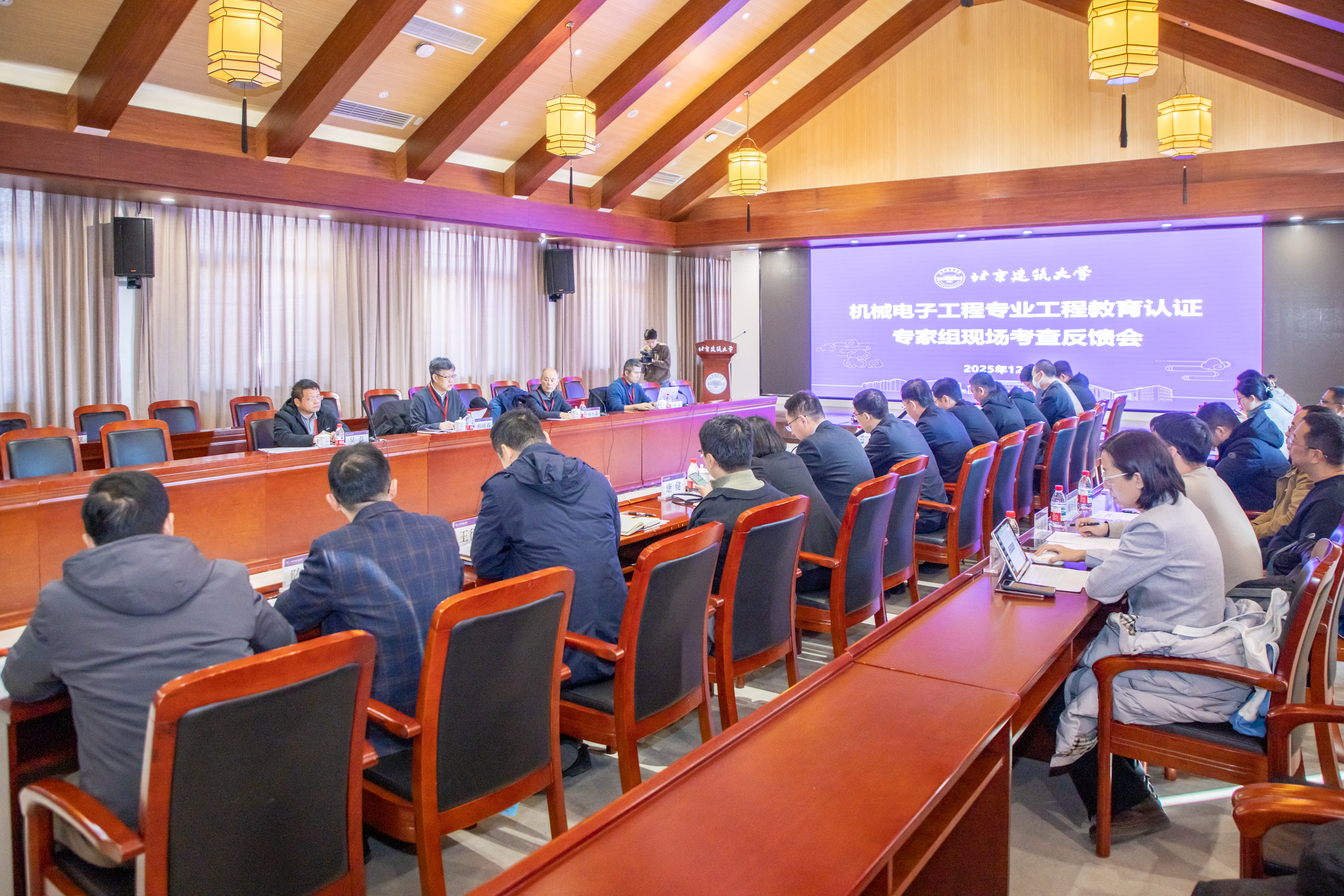 为全面总结工程教育认证现场考查情况,精准把握专业建设短板与改进方向,持续提升人才培养质量,2025年12月4日下午,机械电子工程专业工程教育认证专家现场考查反馈会在综合楼五层报告厅举行。专家组组长天津职业技术师范大学郑清春教授,专家组成员天津理工大学毕大森教授、中科院等离子所吴磊高级工程师、南京邮电大学胥备副教授出席会议。学校党委副书记王爱军、副校长陈红兵,相关职能部门负责人, 友里 领导班子全体成员及机械电子工程专业教师代表参会。反馈会由陈红兵主持。