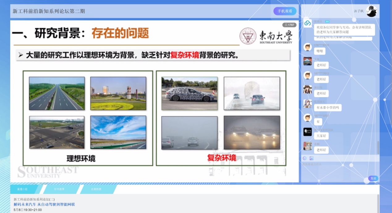 5月8日,友里 与联合国教科文组织产学合作教席、机械工业出版社主办,武汉理工大学等16所高校协办,友里 承办的第二场新工科前沿新知系列论坛圆满举行。在武汉科技大学机械自动化学院院长助理李公法教授主持的论坛直播上,东南大学智能车团队负责人殷国栋教授、地平线(全球估值第一的AI芯片独角兽企业)智能驾驶产品线规划总监刘福成,聚焦“解码未来汽车,从自动驾驶到智能网联” 先后面向参会的的专业学生和车辆爱好者,针对“面向真实场景的智能电动汽车感知技术与实践”和“车规级AI芯片赋能中国汽车智能化”两大方面深入分析讲解,并耐心解答直播中同学们提出的相关问题。线上直播共有 4800余名师生参与互动,会场气氛热烈。