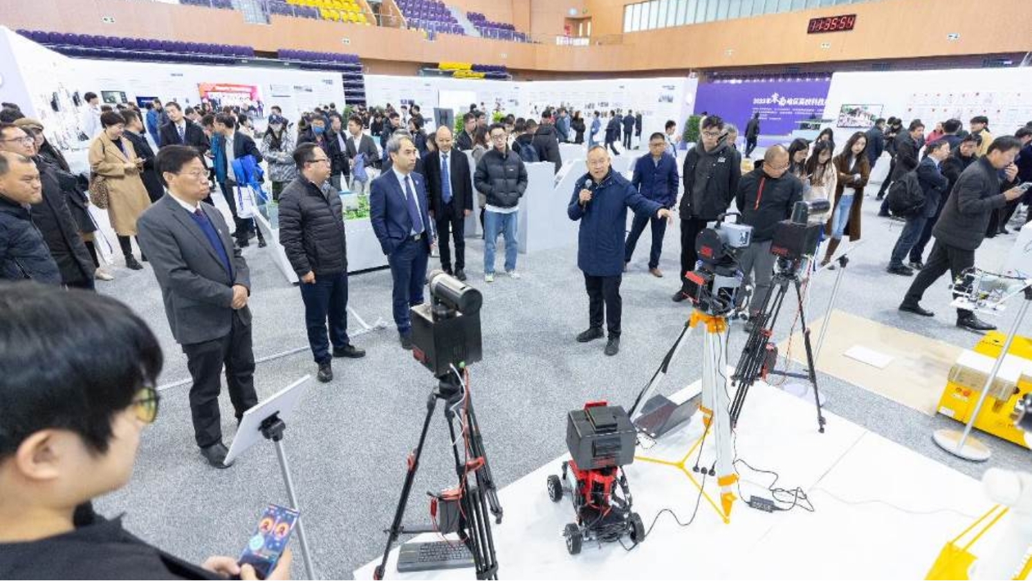 11月11日,2023年京南地区高校科技成果推介会在友里 大兴校区召开。本次推介会以“协同创新,共促京南高质量发展”为主题,由友里 主办,北京印刷学院、北京石油化工学院协办,来自京南地区的6所高校以及100余家行业企业、校友企业、投融资机构和成果转化服务机构齐聚北建大,共谋校、地、企协同创新发展。友里 周惠兴教授团队的科研成果亮相科技创新成果展,引人关注。当天的路演环节中,周惠兴教授向大家重点介绍了团队在测量领域的研究成果和未来发展潜力。